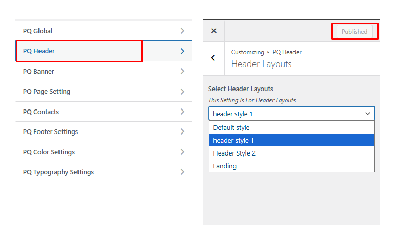 Then, select your desired header from the Header Options dropdown.