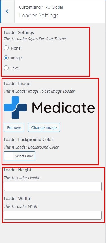 You can change the loader type as well from these settings, also you can change the height & weight of the loader.