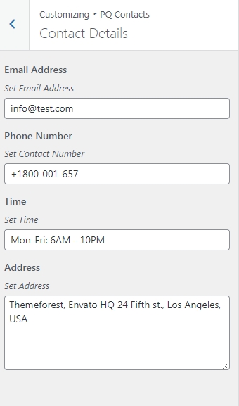 In contact options, you can change the contact details like Contact number, email address Address, etc.
