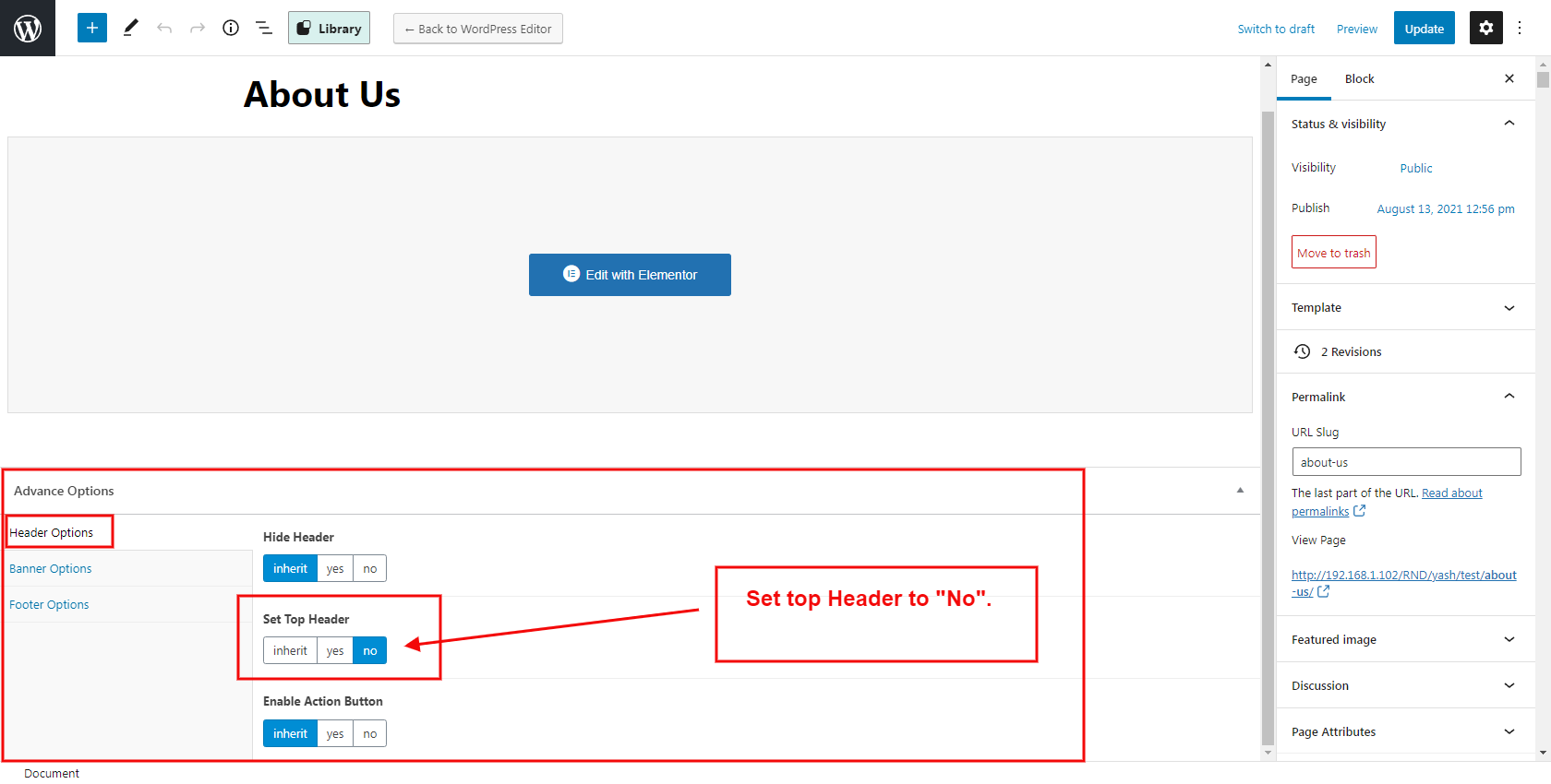 If It is not working then go to a particular page and edit at the bottom of the page to Set Top Header ->NO
