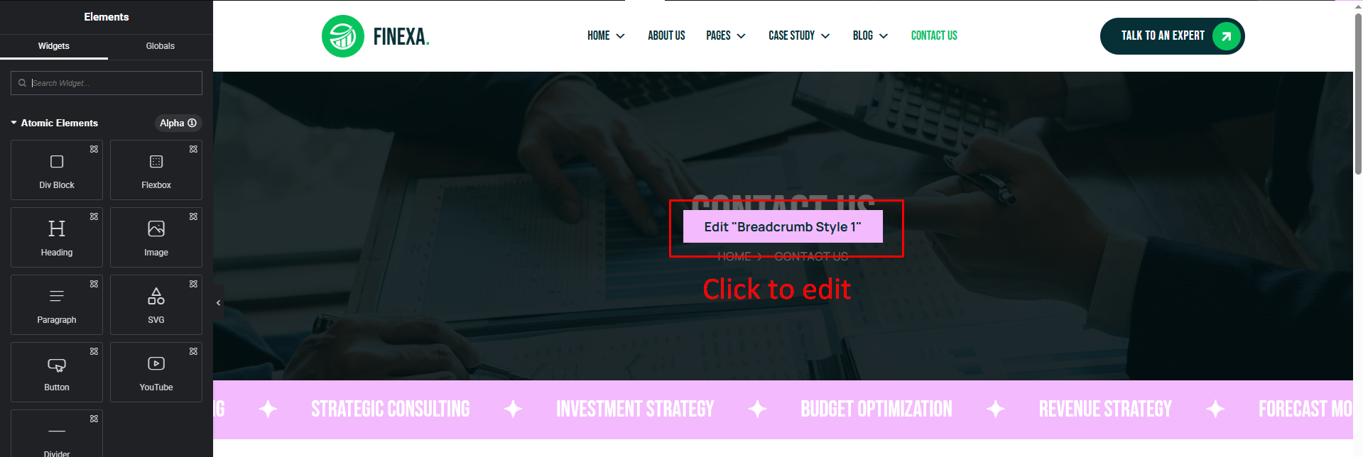 Refer to the steps below to edit the banner : You can customize the banner in multiple ways. You can edit it directly using Elementor, which gives you full control over the design and layout.