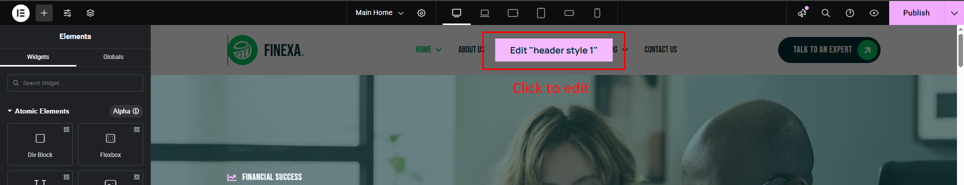 Edit Header From Site Page Once The Page Is Open In Elementor, You’ll Be Able To Edit